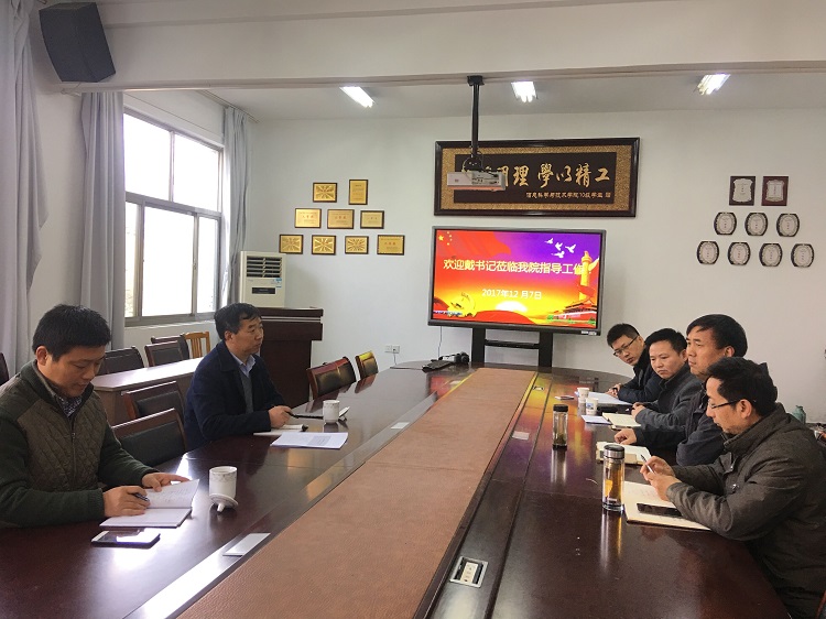 12月7日下午,戴斌荣到化学与环境工程学院调研,在生化教学楼401会议室听取新一届领导班子在师资队伍、教学科研、人才引进、学生工作等方面的汇报。