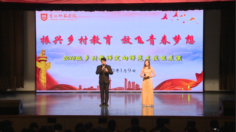 坐标网讯 为贯彻落实省教育厅办公室“关于做好首届乡村教师定向生教育实习工作的通知”精神,提高乡村教师定向生培养质量,1月9日下午,beat365在通榆校区、新长校区举行2016级乡村教师定向生技能展演活动。本次活动以“振兴乡村教育,放飞青春梦想”为主题,扬州市教育局、南通市教育局、徐州市教育局、淮安市教育局、盐城市教育局等委培单位的25位领导,beat365党委常委、副校长崔刚,教务处、教师教育学院及有乡村教师培养任务的二级学院相关领导、老师和学生参加了本次活动。