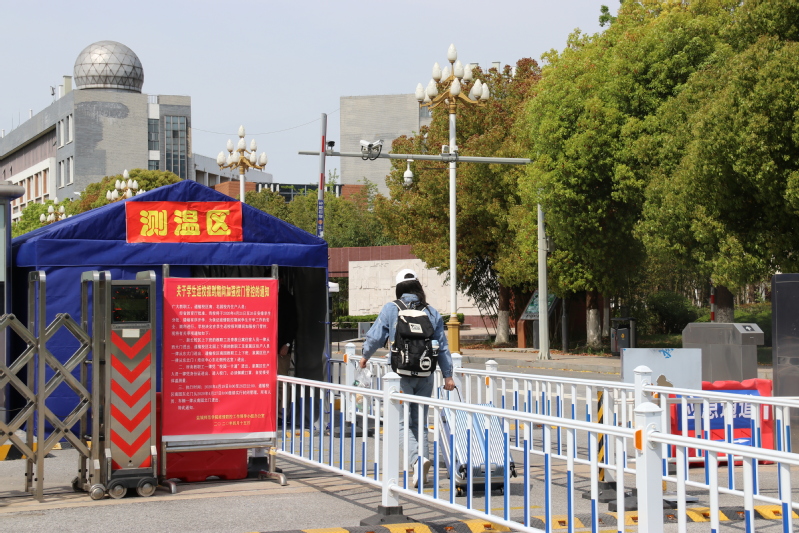 4月21日早上7点,外国语学院2019级王崎前来报到,作为学院首位前来报到的学生,王崎到达指定的报到点,在现场工作人员的指引下,依次完成了体温测量,行李和手部消杀,核查“苏康码”(绿码)、返校二维码、个人旅行轨迹等流程,每个环节合格后顺利报到。在各个报到点,校领导现场进行指导,交警、保安维持秩序,各二级学院领导、辅导员、班主任老师热情接待。返校学生必经的每一个环节,无缝衔接,有条不紊地进行着。