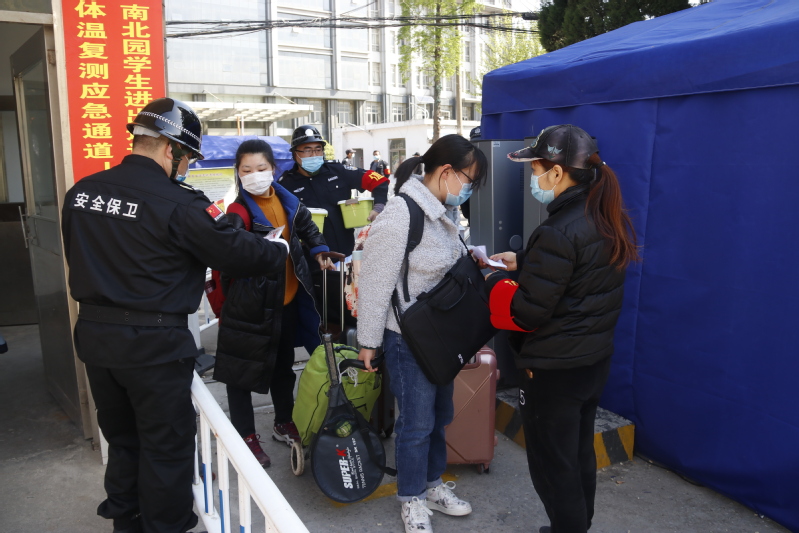 报到现场,来自机关部门和二级学院教职工自发组成的党员志愿服务队格外引人注目。为了更好地迎接学生返校,大家纷纷自愿报名,帮助返校学生做好车站接送、行李搬运、宿舍入住等服务工作。为解决好学生乘坐公共交通工具到校报到“最后一公里”,校团委安排了专车到高铁站接站。此外,学校有关部门和各二级学院为返校学生精心准备了爱心礼包,里面放有口罩、消毒洗手液、就餐劵、温馨提示单等,让返校学子们感到贴心、暖心、安心。