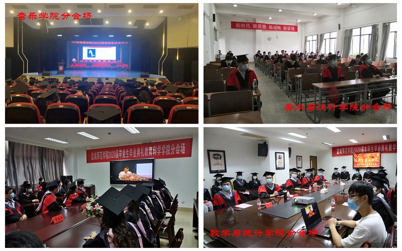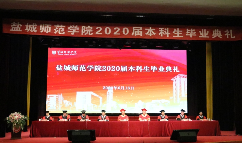 因疫情防控需要,盐城师范学院2020届本科生毕业典礼采用1+16模式,即1个主会场,16个分会场,线上线下同步举行。主会场设于新长校区大学生活动中心,各二级学院设立分会场,以在线直播的方式参加典礼。与此同时,因疫情原因未能返校的毕业生、广大校友、社会各界人士共2.6万人线上收看直播。
