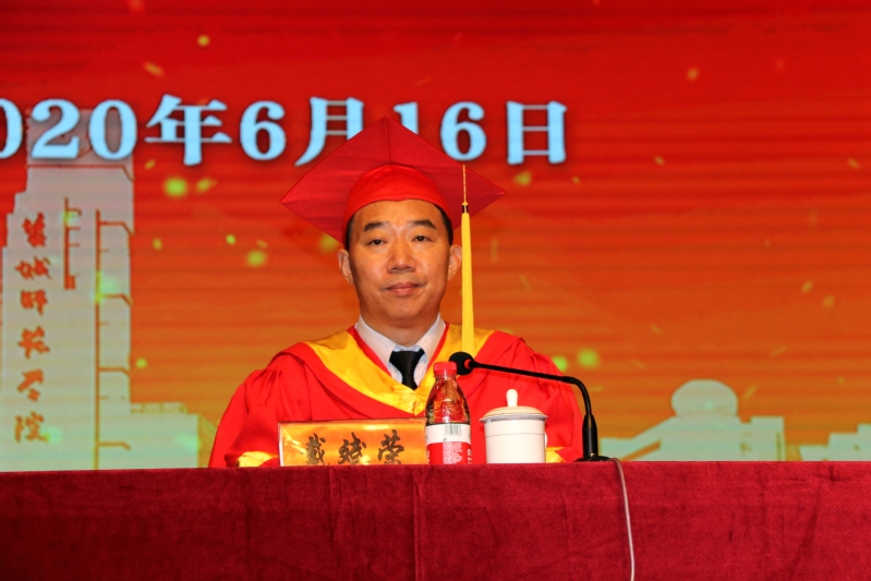 典礼上,校党委副书记、校长方忠代表学校向圆满完成学业的毕业生们表示祝贺,向为学生成长辛勤耕耘的教职员工和家长表示诚挚的敬意。他说,“今年是史上最特殊的毕业季,受疫情影响,我们首次采用‘线上+线下’相结合的方式举行毕业盛典。此时此刻,母校在‘云’的这一头,你们在‘云’的那一端,我们跨越空间与距离,共同完成人生中这场重要的‘成人礼’。”“在学校2016年到2020年的时间轴上,永远留存同学们追逐梦想、努力奔跑的身影,闪烁青春荣耀的光芒,祝贺你们,学校将永远以你们为荣!感谢你们,学校为你们点赞!”