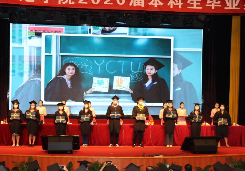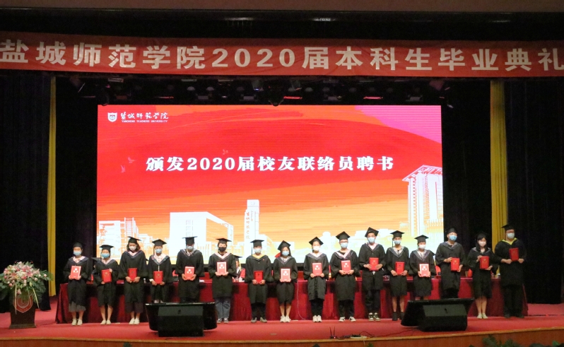 一朝盐师人,一世盐师情。典礼上,盐城师范学院各地校友会为毕业生们送上了视频祝福,校领导为2020届校友联络员代表颁发聘书。