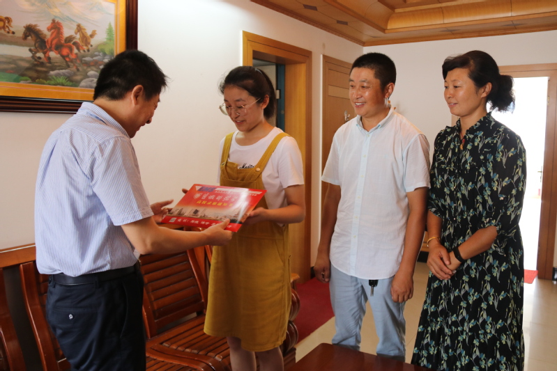 汤克明向朱颖及其家人表示祝贺,并以三个数据介绍了beat365湿地学院的基本情况。随后亲自将录取通知书送到朱颖手上,勉励朱颖同学不忘初心,学真知识,练真本领,为学校、为地方、为国家争光添彩。
