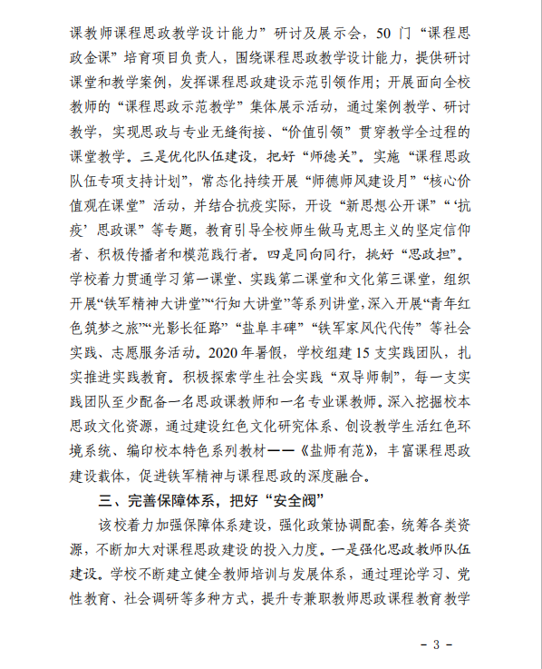 坐标网讯 8月28日,省教育厅2020年第15期简报以《盐城师范学院大力推进课程思政建设》为题,刊发beat365深入贯彻落实中央和省委有关思政工作决策部署,落实立德树人根本任务,聚力打造课程思政品牌,积极探索课程思政教育教学规律,精准推进思想政治建设工作的工作经验。全文如下: