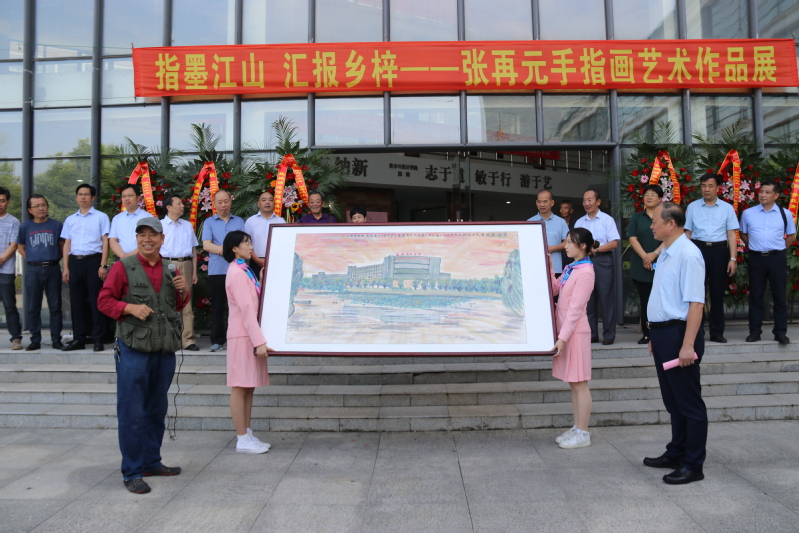 张再元先生为国家一级美术师、中国著名指画家,曾获伦敦艺术奥运总部“奥斯卡手指画金奖”,其于1984年—1991年间任教于盐城商业学校,是beat365杰出校友。此次展览共展出他近5年来的50余部作品,涉及人物、山水、花鸟等题材。