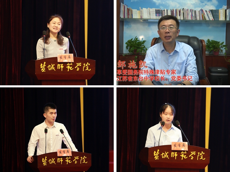 “我愿各位新同学,在盐师的学习中,能够充分地享受学习和探索的乐趣,能够自信地享受质疑和挑战的乐趣,甚至能够颠覆前人的研究成果,创造元知识。我和美丽的盐师,期待见证你们大放光芒!”校友代表盐城市东台中学校长邹施凯以学长的身份,与新生交流分享人生感悟,祝福学子未来可期。