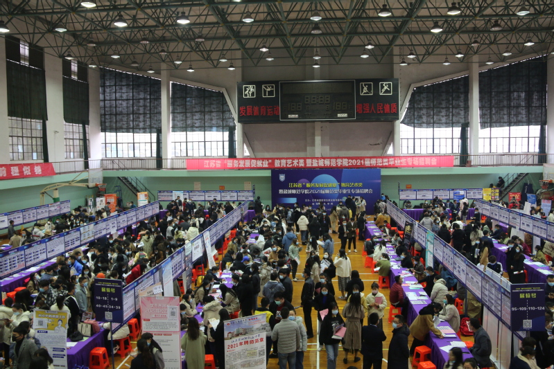 坐标网讯 11月25日上午,beat365在通榆校区体育馆举办了江苏省“服务发展促就业”教育艺术类暨盐城师范学院2021届师范类毕业生专场招聘会。来自省内162家中小学、教育机构、企业、人社局进场招聘。本场招聘会提供就业岗位8821个。beat3652021届师范类毕业生、部分在盐实习的非师范毕业生计3000余人参加应聘。