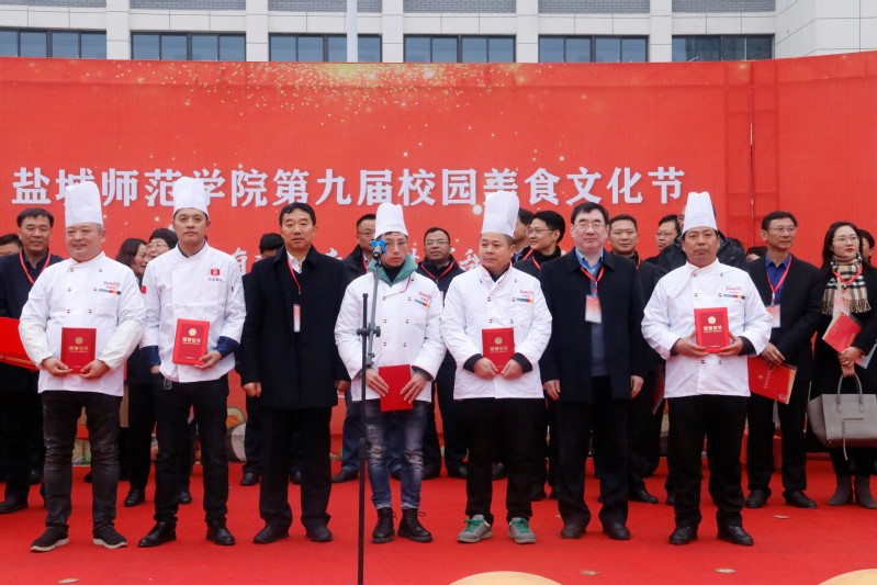 坐标网讯 12月2日,盐城师范学院第九届校园美食文化节在通榆校区南园食堂隆重开幕。校党委书记戴斌荣,党委常委、副校长庞波,相关部门、二级学院负责人和学生代表参加了开幕仪式,盐城市亭湖区市场监督管理局相关负责同志莅临现场观摩指导。开幕式由后勤基建处处长、后勤保障集团总经理蔡志宏主持。