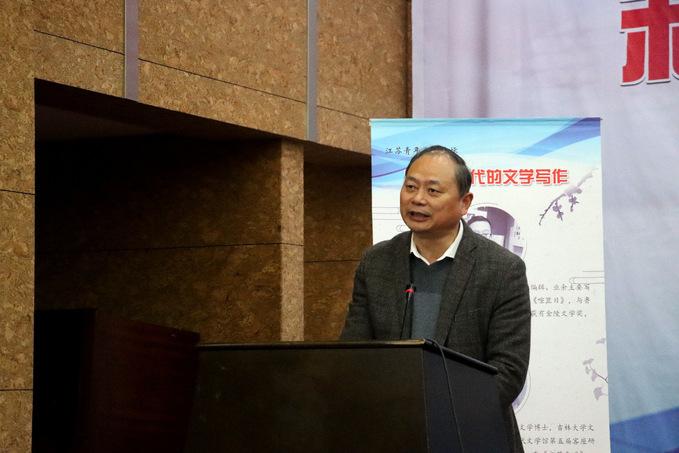 在国际会议中心举行的“江苏当代文学研究基地”揭牌仪式上,方忠指出,文学院通过举办“创意写作班”、文学讲座、文化论坛和学术交流等活动,为新文科人才培养建设打造优质平台,也为推动地方文艺事业繁荣发展做出了贡献。“江苏当代文学研究基地”落户文学院,必将有利于提升人才培养水平、丰富学校人文学科内涵。文学院要以“江苏省当代文学研究基地”为载体,依托双方资源与优势,实现共建共享,使之成为集文学研究、文学批评、人才培养和文学交流于一体的当代文学研究基地,促进江苏当代文学繁荣。