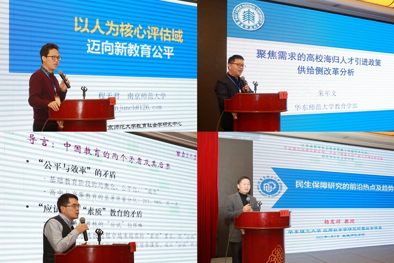 在会议主旨报告阶段,beat365特邀长江学者特聘教授、南京师范大学教育社会学研究中心主任、博士生导师程天君教授为大会做了“以人为核心评估域:迈向新教育公平”的主题报告;华东师范大学教育学部副部长、博士生导师朱军文教授为大会做了“聚焦需求的高校人才引进政策供给侧改革”的主题报告;青年长江学者、南京大学社会学院副院长、博士生导师吴愈晓教授为大会做了“社会分层、课外教育与青少年发展”的主题报告;华东理工大学社会与公共管理学院副院长、博士生导师杨发祥教授为大会做了“民生保障研究的前沿、热点及趋势”的主题报告。在下午的教育学、社会学学术分论坛阶段,各高校代表们围绕“公平与科学:高校综合评价录取招生的困境与突破”“应用型大学学科-专业-产业螺旋体的建设路径研究”“乡村振兴背景下江苏美丽乡村建设的若干思考”等问题展开学术交流。