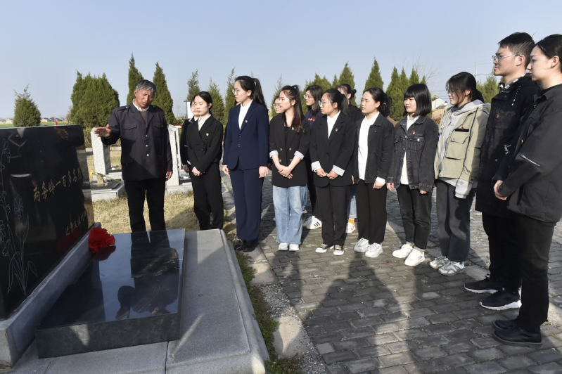活动最后,在守墓人、“中国好人”卞康全的带领下,文学院全体师生党员有序瞻仰五条岭烈士陵园,听守墓人讲述党史故事,重温红色记忆,感悟爱国情怀。