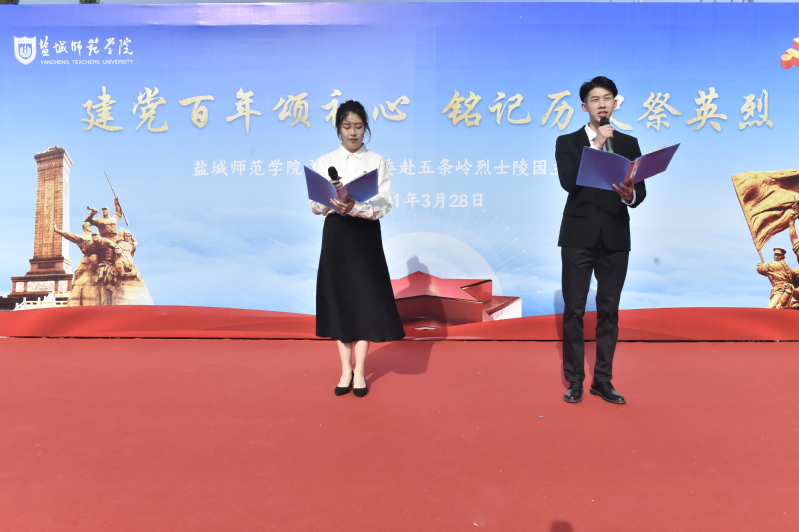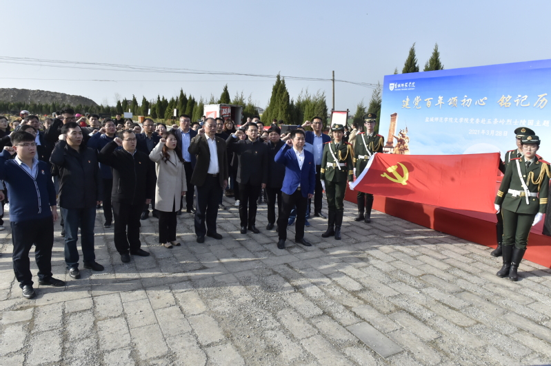 为迎接中国共产党成立100周年华诞,扎实开展党史学习教育,3月28日下午,盐城师范学院文学院师生党员赴五条岭烈士陵园开展“建党百年颂初心,铭记历史祭英烈 ”主题党日活动,校党委副书记、校长方忠参加了联系基层党组织、文学院党委教工第一党支部的党日活动。