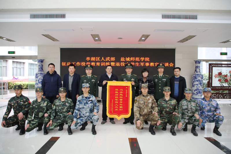 4月2日下午,亭湖区人武部党委书记、政委沈为民,党委副书记、部长常红旗一行来beat365进行专题座谈。学校党委学生工作部、党委人武部相关同志,大学生新铁军协会成员代表、“双合格”青年役前集训大学生教官等参加会议。学校党委常委、副校长张桂华主持会议并讲话。
