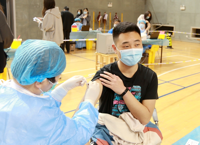 4月8日上午,新长校区体育馆内外秩序井然。馆内设置的临时接种点现场被分为等候、登记、接种、留观等区域。前来接种的师生经测温、扫码登记后进入馆内,医务人员为其讲解注意事项,随后扫描身份证登记进行接种。完成接种后,接种人员需在场馆内观察区隔位就坐,留观半小时后无任何不适方可离开。