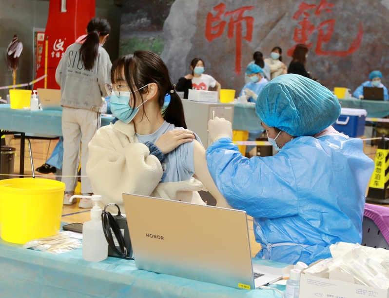学生在接种疫苗
