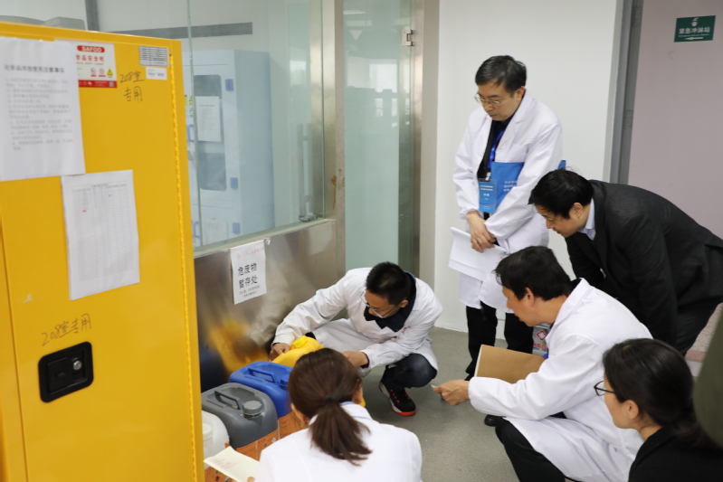 专家组分三组开展实验室安全检查工作,一组在会议室检查实验室安全管理工作档案和台账等资料,并现场询问。其余两组分别到化学与环境工程学院、海洋与生物工程学院、药学院、湿地学院等单位的实验室进行实地安全检查,重点检查了危险化学品使用安全专项治理信息系统填报、实验室安全自查自纠与隐患整改落实、实验室准入机制的建立,校园安全文化建设、专业安全知识培训宣传、实验室安全演练与应急能力建设、危险化学品采购、运输、存储、使用、处置等环节的管理、实验室危险废物暂存及处置等。