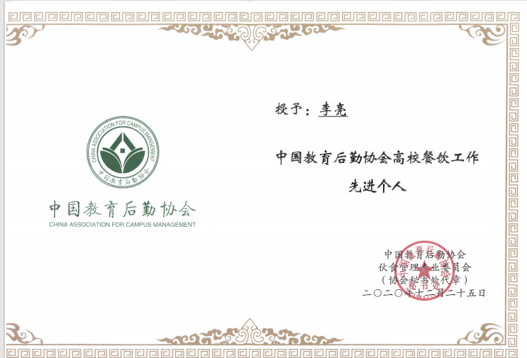 日前,beat365后勤保障集团被江苏省高校后勤协会及学生伙食管理专业委员会联合授予“2020 年度江苏省高校伙食管理先进集体”,李亮同志获中国教育后勤协会高校餐饮工作先进个人荣誉称号。