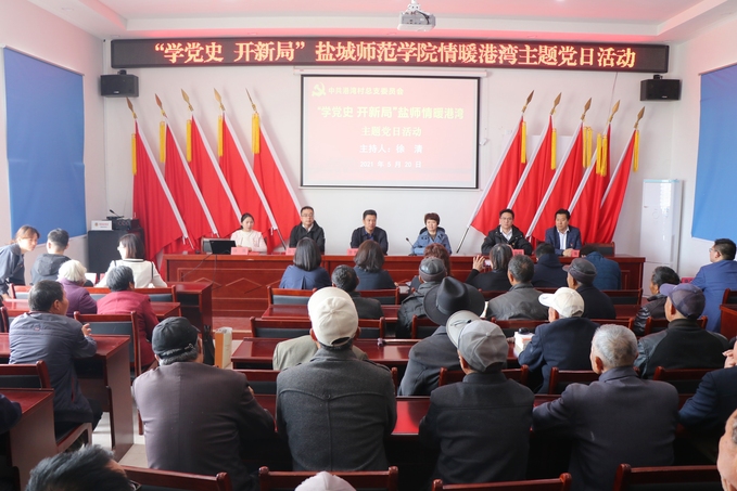 在张集中心社区港湾村党群服务中心,黄为民向港湾村赠送《中国共产党简史》《习近平新时代中国特色社会主义思想学习问答》等党史学习书籍。随后,来自历史与公共管理学院学生党员陈箫为港湾村党员上了一堂党课。看着老党员们期盼的眼神,历史与公共管理学院党委书记孙玉峰表示,要充分发挥高校的使命与担当,依托学院专业优势,深入社区、学校和乡村一线,讲述党史故事,力争达到学史明理、学史增信、学史崇德、学史力行的教育效果。同时,盐师“爱心妈妈”向港湾村3名留守儿童捐赠学习用品和助学金,并现场为他们举行了“生日派对”,留守儿童张雅莉立志要以优异的成绩回报“爱心妈妈”。