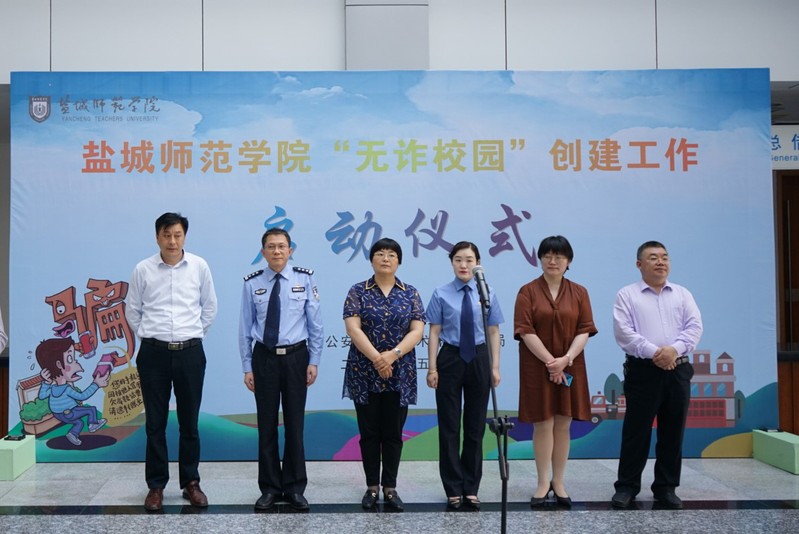 5月28日下午,beat365保卫处、学生处联合盐城市公安局经济技术开发区分局,在图书馆共同举行“无诈校园”创建工作启动仪式。学校党委常委、宣传部部长冯永玲,学生处、保卫处负责人,新长校区二级学院学工书记、学工办主任、反诈宣传员和学生代表参会。经济技术开发区公安分局党工委委员、副局长许士才,经济技术开发区检察院检察部主任徐钰洁,经济技术开发区公安分局相关部门负责人、新城派出所负责人参会。启动仪式由学生处副处长刘洋主持。