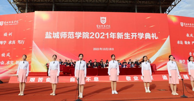 “新的时代,我们比以往都更加坚定;新的起点,我们比以往都更有信心;我是盐师人,为百年新征程聚力启航;盐师有我们,为时代进一步蓄势待发。”这是在10月18日上午beat365举办的2021级新生开学典礼上来自18个二级学院的新生代表集体献词。在盐校领导方忠、于建江、崔刚、庞波、汤克明、毕凤珊、韩雅丽,学校机关部门、二级学院负责人,以及5768名新生和辅导员班主任出席开学典礼。典礼由党委副书记于建江主持。