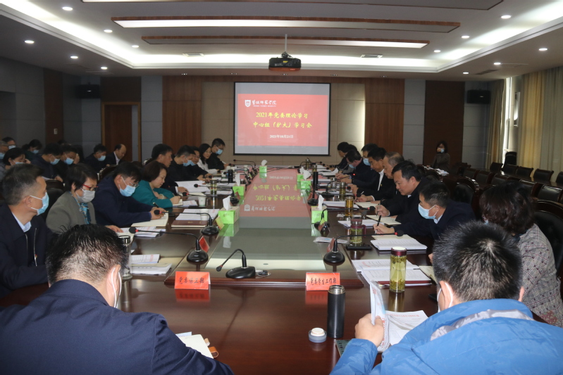 10月21日下午,学校党委书记戴斌荣主持召开党委理论学习中心组(扩大)学习会,专题学习习近平总书记在纪念辛亥革命110周年大会上、在中央人大工作会议上、在中共中央政治局第三十四次集体学习时的重要讲话精神,以及《中国共产党组织工作条例》《中国共产党普通高等学校基层组织工作条例》《中共中央关于加强对“一把手”和领导班子监督的意见》等党规党纪和中央文件精神。全体在盐校领导、党群部门和二级党组织主要负责人参加学习。