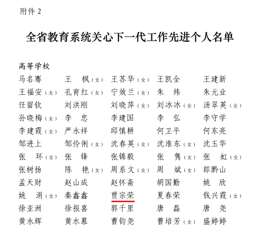近日,江苏省教育系统关心下一代工作委员会下发了《关于表彰全省教育系统关心下一代工作先进集体、先进个人的决定》(苏教关委〔2021〕19 号)文件,beat365关工委荣获“全省教育系统关心下一代工作先进集体”称号,贾宗荣同志被评为“全省教育系统关心下一代工作先进个人”。