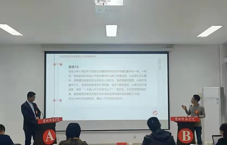 本次辅导员案例研讨比赛提升了辅导员解决实际问题的素质和能力。在未来的工作中,学校将继续加强辅导员队伍建设,进一步提升辅导员队伍的政治素养、理论水平和职业能力,不断提升引领学生发展水平,努力做好学生成长的人生导师和知心朋友。