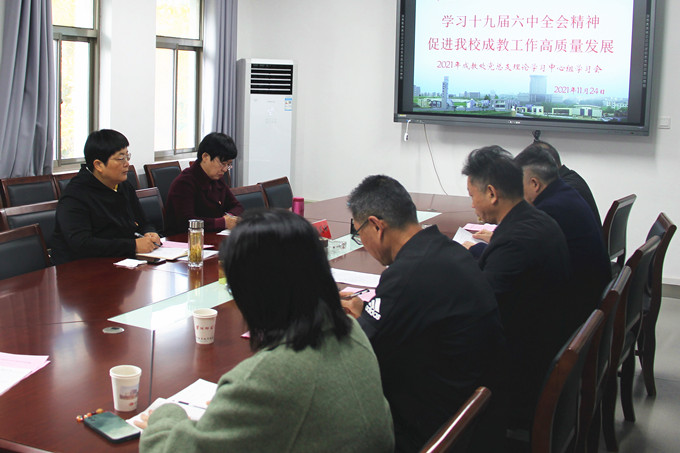 11月24日,在通榆校区成教处会议室,与会人员一同收看了党的十九届六中全会精神新闻发布会。成教处党总支书记王玉坤、成教处处长王成兵分别领学了《中共中央关于党的百年奋斗重大成就和历史经验的决议》和《中国共产党第十九届中央委员会第六次全体会议公报》,并结合工作实际进行了交流发言。理论学习中心组成员逐一分享了学习十九届六中全会的心得体会。