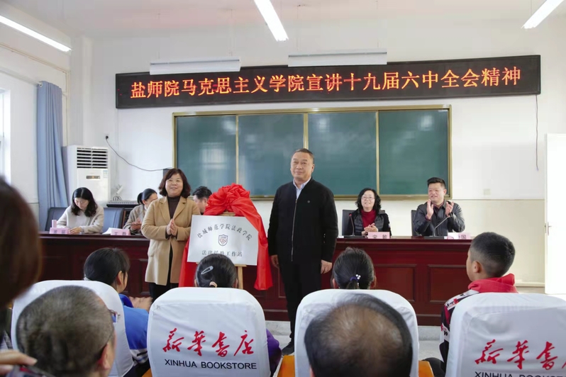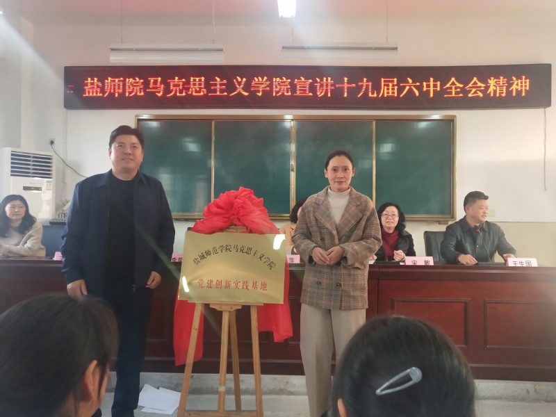 李荣庆和响水县教育局主任科员王静共同为“盐城师范学院马克思主义学院党建创新实践基地”揭牌,法政学院副院长唐萍和响水县教育红十字会会长梁军共同为“盐城师范学院法律援助基地”揭牌。