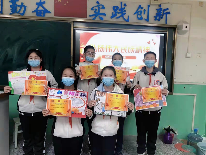马克思主义学院曹佩、冯杨诗雨、李飞飞、朱可妍等同学分别在哈密市第五小学、第六中学开展“铸牢中华民族共同体意识 争做民族团结好少年”主题宣讲活动,赢得学校师生的一致好评;数学与统计学院的陈晶星、凌欣悦在哈密市八中和九校开展“弘扬伟大民族精神”手抄报比赛,并举办“我来说说我的家”主题班会活动,学生通过分享各自民族的风俗习惯和服饰文化等内容,加强彼此之间的了解;数学与统计学院沈超同学则利用学校的周末文化活动带领学生参观“民族刺绣园”和“文创园”,让学生感受不同民族的智慧和魅力;外国语学院的白璟琦、张晓婷等同学举办“展美食说英语”活动,学生们通过ppt用英语简要讲解各自民族的特色美食,让学生对各民族饮食文化有了深刻认知。