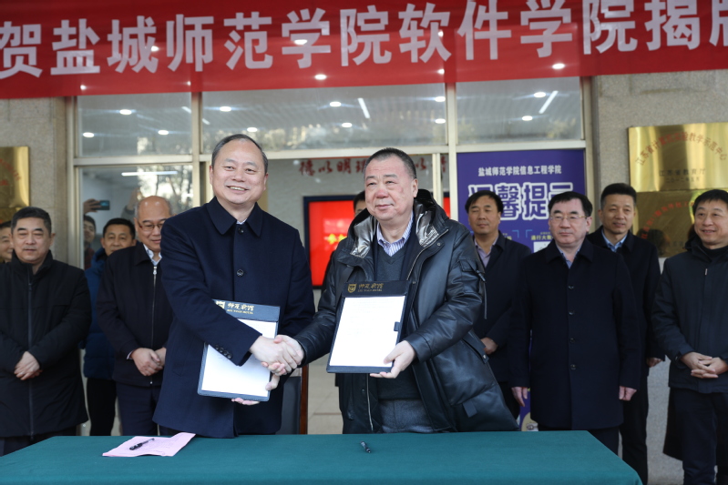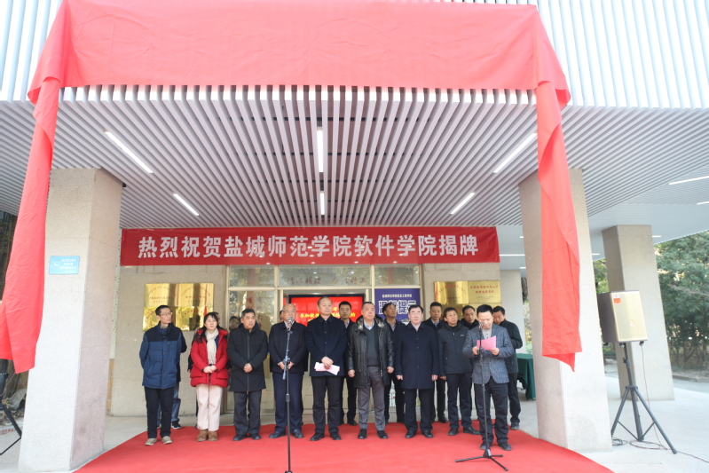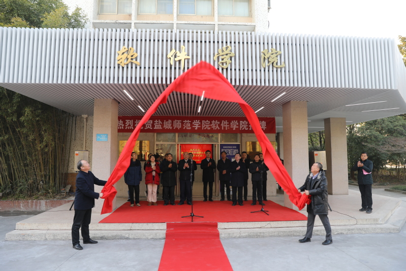 12月28日下午,盐城师范学院软件学院揭牌仪式在通榆校区5号楼前隆重举行。南京航空航天大学副校长黄志球教授,国家示范性软件学院联盟秘书长、国家软件工程教指委副主任委员、北京交通大学卢苇教授,国家软件工程教指委副主任委员、江苏省计算机学会、特色化示范性软件人才培养专委会主任、南京大学骆斌教授,中软国际信息技术有限公司执行董事、高级副总裁唐振明博士,江苏省计算机学会秘书长、南京大学金莹教授,学校党委副书记、校长方忠,党委常委、副校长庞波,党委常委、副校长汤克明出席揭牌仪式。学校发改办主任、高教所所长黄新如主持仪式。