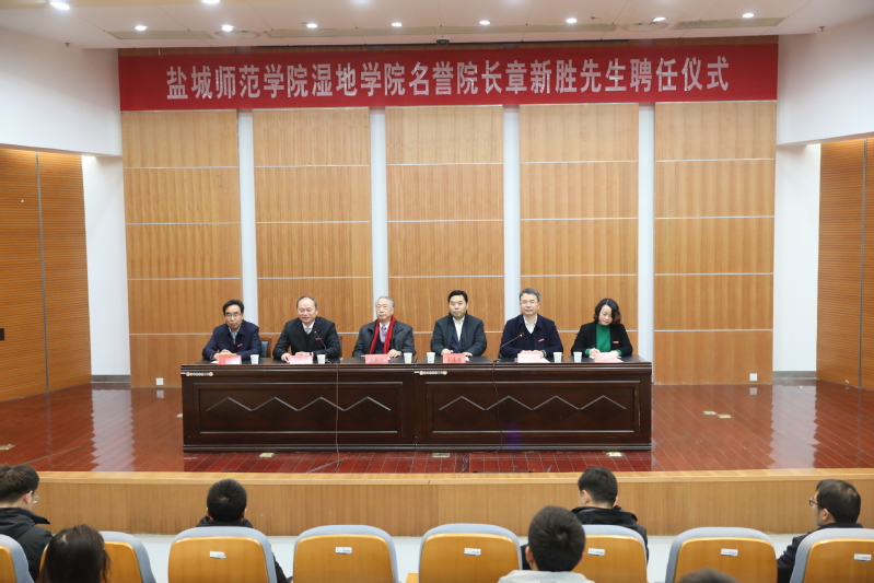 1月9日下午,教育部原副部长、世界自然保护联盟原总裁兼理事会主席章新胜受聘beat365湿地学院名誉院长仪式在新长校区图书馆学术报告厅举行。盐城市人民政府副市长王连春,学校党委副书记、校长方忠,党委副书记于建江,盐城市政协副主席、湿地学院院长唐伯平,湿地学院党总支书记宋燕萍出席仪式。于建江主持仪式。