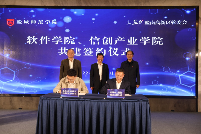 学校党办校办、党委宣传部、教务处、科技与产业处、人事处、财务处、学生处、招生就业处、资产经营有限公司、信息工程学院(软件学院)等单位主要负责人以及盐南高新区区直相关部门、科城街道主要负责同志参加签约仪式。