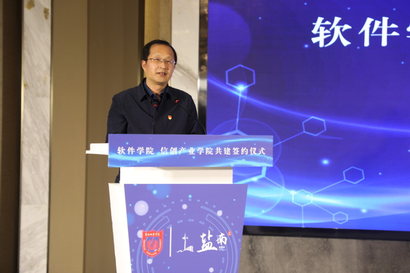 戴斌荣在致辞中介绍了学校近年来服务地方社会发展、加强政产学研合作的基本情况。戴斌荣表示,与盐南高新区合作共建软件学院、信创产业学院,对于推动智慧盐城建设、激发学校办学活力具有十分重要的意义,必将在深化政产学研纵深发展、共谋校地协同创新的基础上,进一步凸显盐城软件与数字文化产业发展特色,构建良好的校地融合协同创新生态,进一步发挥高校人才、科创和智库等优势,实现双方共赢发展。