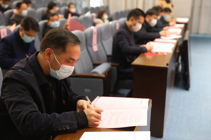 会上,戴斌荣与学校领导班子成员,校领导与分管部门或联系单位的处级领导班子主要负责人分别签订了党风廉政建设和意识形态工作责任书。