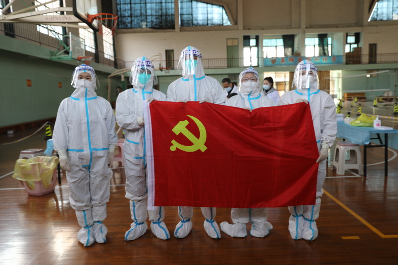 在疫情防控的关键时期,全体校领导和党员领导干部坚守疫情防控一线,带头值班值守,带头参加志愿服务,靠前督促指导,当好防控疫情、守护校园的“指挥员”“排头兵”,认真落实中央、省市委各项疫情防控部署要求。各基层党组织积极响应学校党委号召,把党员力量汇聚到一线,把志愿服务配送到一线,广大党员、全体辅导员带头做好宣传引导,带头学习疫情防控知识,自觉遵守防疫规定,主动亮身份、树形象,做到平常时候看得出,关键时刻站得出,危急关头豁得出,共同构筑起校园疫情防控的“铜墙铁壁”,让党旗在校园疫情防控一线高高飘扬。