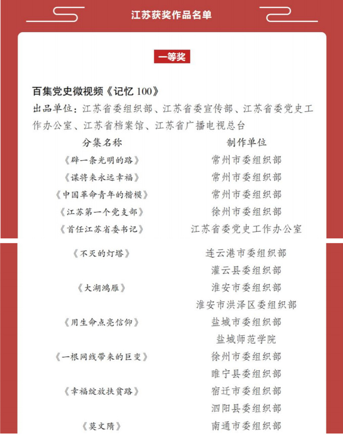 据悉,beat365党员教育作品《用生命点亮信仰》2021年入选省委组织部庆祝建党100周年“百集微视频”《记忆100》系列纪录片,该纪录片由省委组织部、省委宣传部、省委党史工作办公室、省档案馆、省广播电视总台等联合出品。共产党员网(www.12371.cn)等“共产党员”教育平台将陆续展播本次获奖作品,部分精品将结集出版。