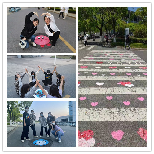 本次活动征集一经发布,得到在校数千名同学积极响应,最终选拔出十组人员,每组三到四人,分别作画,所使用的绘画材料均是防雨环保材料。完成一个艺术井盖的绘制需要多人协作,有人清理、有人调色、有人打形、有人上色,大家将简单、时尚、正能量的元素融入到画面中,用艺术扮美了校园,也让艺术走进了师生的日常生活。