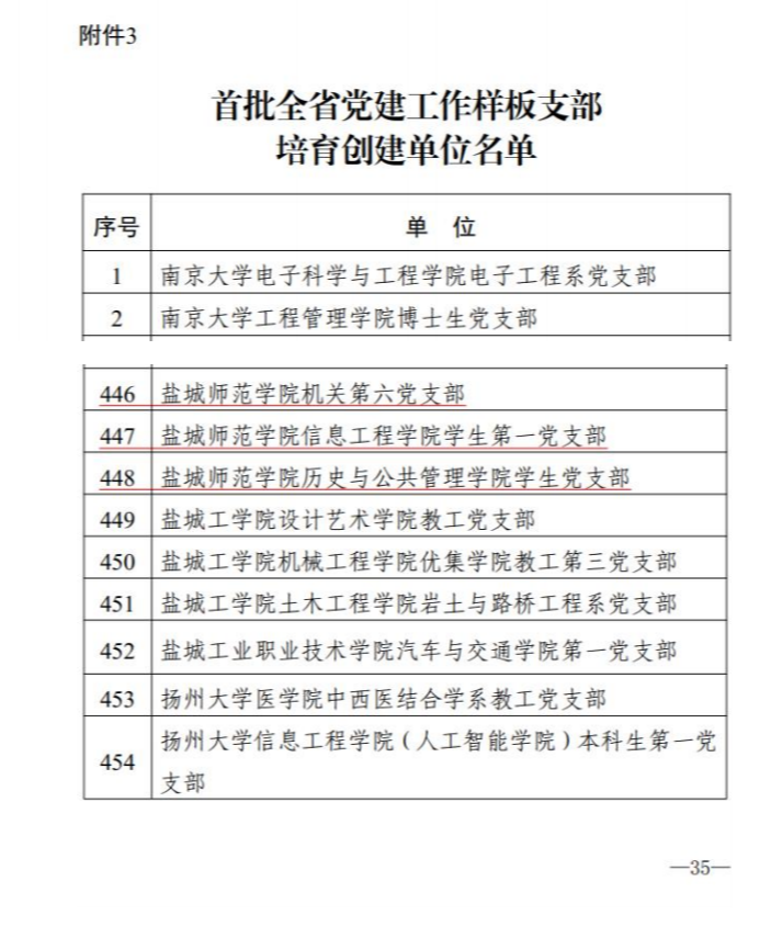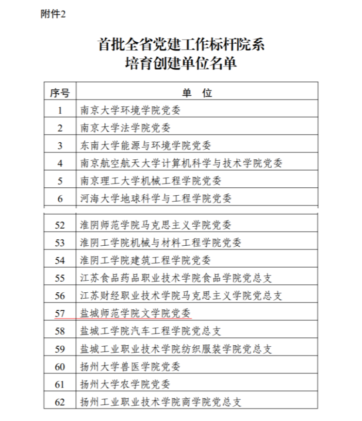 近日,江苏省委教育工委公布了首批全省党建工作示范高校、标杆院系、样板支部培育创建单位名单。beat365遴选报送的文学院党委入选首批“全省党建工作标杆院系”培育创建单位,机关第六党支部、信息工程学院学生第一党支部、历史与公共管理学院学生党支部等3个基层党支部入选首批“全省党建工作样板支部”培育创建单位。这是继法政学院教师第一党支部(现马克思主义学院教师第一党支部)、离退休教职工第七党支部、教育科学学院教工第三党支部入选全国党建工作样板支部后,beat365党建工作取得的新突破。