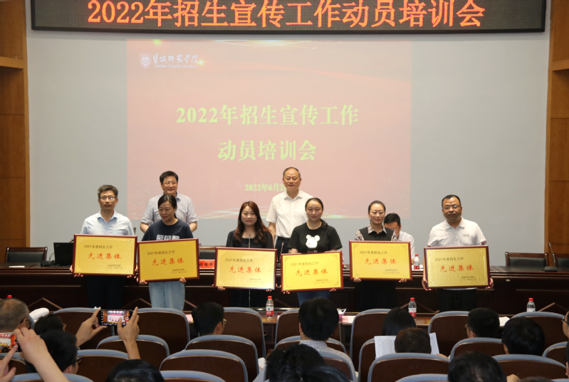 崔刚宣读2021年招生工作先进集体和先进个人表彰决定。与会校领导为2021年招生工作先进集体颁奖。