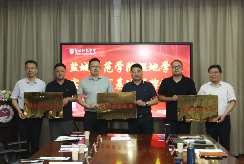 于建江、陈锦还、岳峰分别为六家实践教育基地单位授牌。仪式开始前,各单位负责人参观了湿地学院滩涂植物标本馆和蝴蝶标本馆。