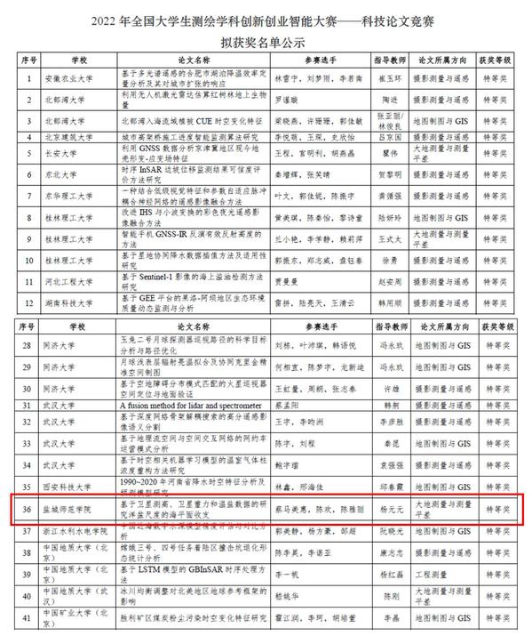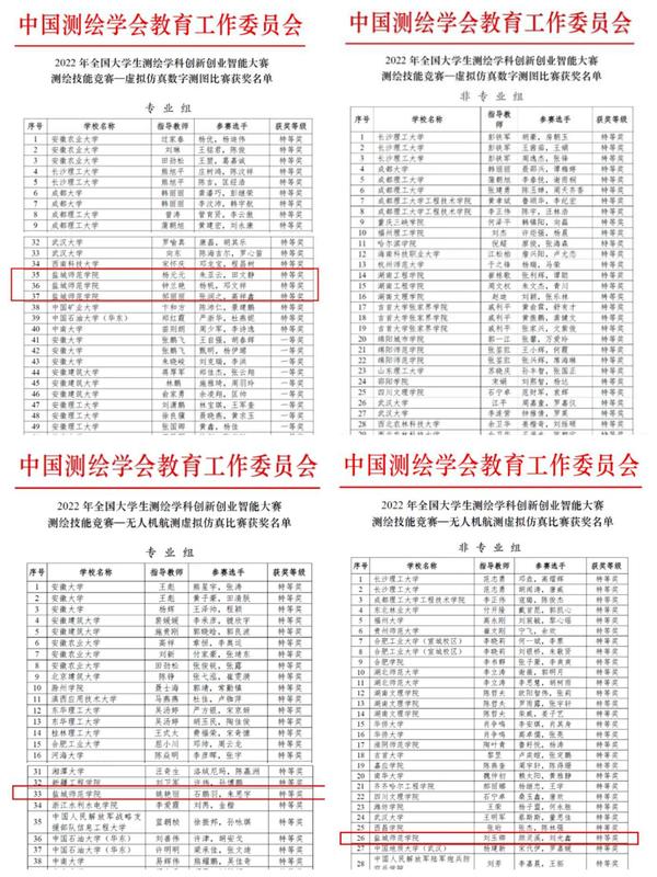 近日,2022年全国大学生测绘学科创新创业智能大赛公布获奖名单,beat365城市与规划学院学生在测绘技能竞赛(数字测图组、无人机组、程序设计组)、开发设计竞赛(创业计划组)和科技论文竞赛三大赛道中均斩获佳绩,获特等奖8项,一等奖7项,二等奖4项,29名参赛同学全部获奖,获奖率100%。