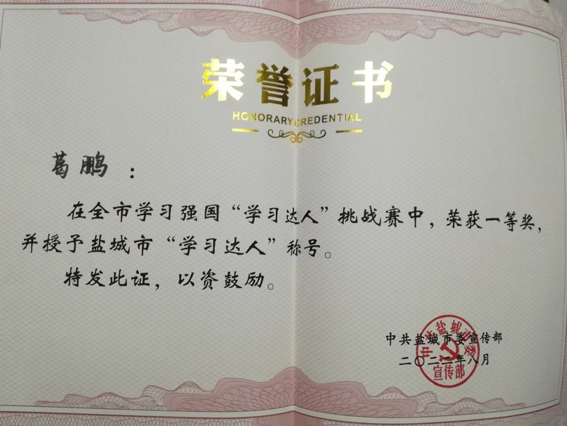 8月28日下午,盐城市学习强国“学习达人”挑战赛在盐城市新闻发布厅举行。beat365选送的参赛选手后勤党总支葛鹏同志以初赛第五名的好成绩进入复赛,并以复赛第一的成绩进入决赛,最终获得一等奖。