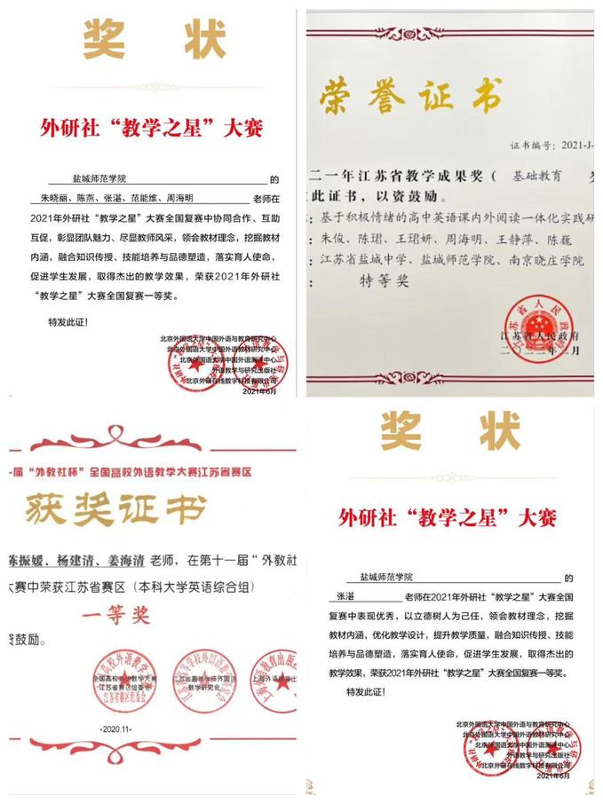 教育教学,硕果累累。以省优秀基层教学组织“英语教育系”为引领,以核心课程群为单位,形成36个教研团队。加强校校、校企合作,已完成或在研省级教改项目2项、省规划项目5项、省中小学教研室项目6项、市厅级课题20余项。获教学成果奖特等奖1项、二等奖3项。在国内外学术期刊上发表教研论文200余篇,其中高质量水平论文52篇。教师在外研社“教学之星”大赛等重要赛事中荣获各类奖项75项,其中全国一等奖1项、二等奖5项、省一等奖4项、二等奖2项。学生在全国英语演讲大赛、中国大学生韩国语演讲大赛、省师范生教学基本功大赛等标志性学科竞赛中荣获各类奖项260余项,完成国家、省级大学生创新创业项目20余项,获评省优秀本科毕业论文6篇。