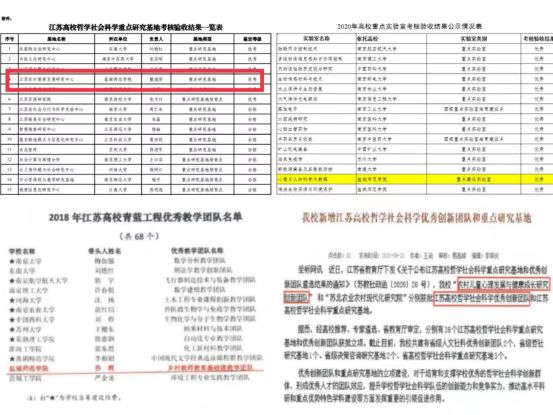 党员先锋层出不穷。学院1人被评为江苏省教育系统先进个人,1人被评为盐城市五一巾帼标兵,1人获得校“高尚师德”奖教金,1人被评为优秀党务工作者,5人被评为优秀党员。7人次省教学(微课)大赛获奖(其中一等奖2项,实现了beat365在该项赛事上的历史突破)。新增博导2人,硕导10人,国务院特殊津贴专家1人,省级人才称号5人、省教科研先进2人。获批国家社科基金项目11项(其中重点1项),核心期刊以上论文65篇,其中C刊26篇,SSCI14篇,出版专著23部。获省厅级以上奖项31项,获省厅级咨询报告肯定行批示8项。获国家教学成果奖1项、省级教学成果奖4项。