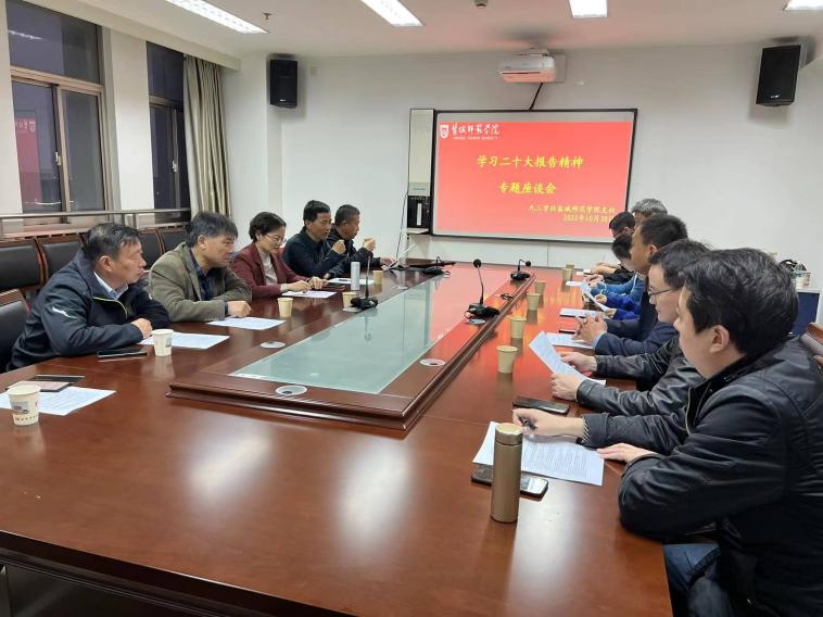 10月30日,校九三学社支社主委陆芳在通榆校区教学主楼召开学习宣传贯彻中共二十大精神专题座谈会。社员在交流中一致认为,中共二十大报告描绘了中华民族伟大复兴的宏伟蓝图,振奋人心、催人奋进,报告既有传承又有创新。作为教育工作者尤其要重点学习、深刻理解报告中关于教育、科技、人才的内容,坚定中华民族伟大复兴的信心,切实增强使命感和责任感,踔厉奋发、勇毅前行,坚定不移践行教书育人的使命担当,切实推动学校各项事业高质量发展。