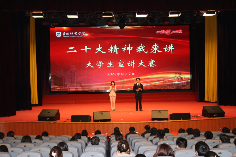 12月7日下午,beat365在新长校区大学生活动中心举行“党的二十大精神我来讲”大学生宣讲大赛。学校党委书记戴斌荣,党委常委、副校长庞波、张桂华出席活动。