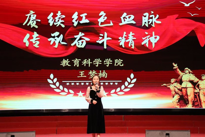 比赛现场气氛热烈,入围决赛的10名大学生宣讲员紧扣党的二十大精神主题,创新宣讲方式,从不同角度和多个层面深入宣讲党的二十大精神。教育科学学院王梦楠同学在宣讲中通过舞台剧演绎了陈祥榕在西部边境冲突中奋不顾身、英勇战斗的爱国情怀;音乐学院孙悦、鞠幸燃同学通过角色扮演的方式让大家沉浸式感悟“两弹元勋”邓稼先的故事;文学院徐正平同学通过深情演绎包斌、陆一军夫妇捐资助学的故事,引导青年学子坚守初心向未来。他们抑扬顿挫、慷慨激昂的气势,旁征博引、绘声绘色的讲述,赢得了现场观众阵阵热烈的掌声。