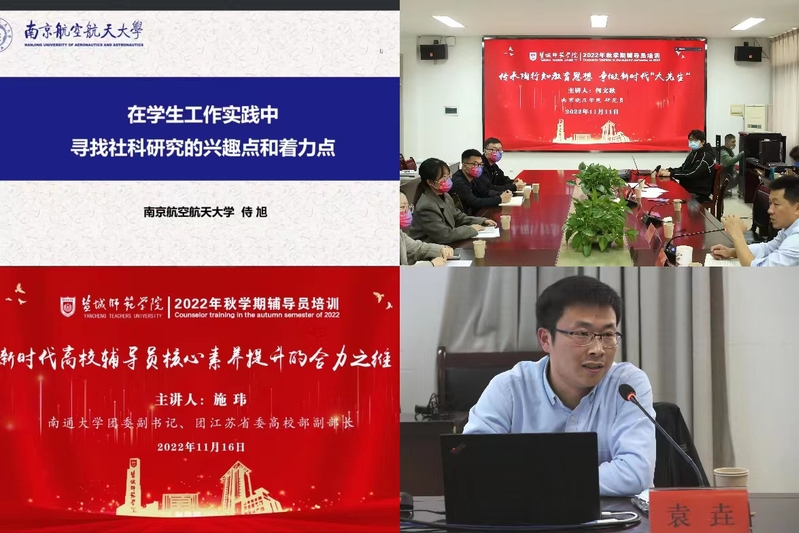 专题讲座中,学校党委副书记、校长张宏如基于心理学、管理学和思想政治教育相结合的视角,从思想政治素养、工作业务能力、人格动机系统等维度分析了辅导员职业能力的机理。学校党委常委、副校长庞波从教师职业道德研究现状、中外教师道德的主要论述、教师劳动的特殊性和教师道德特点、教师道德的基本原则、教师道德的基本规范与要求、教师道德修养等六个方面讲述了教师职业道德建设的历史与现状、理论与实践。宿迁学院党委常委、副校长侍旭教授围绕辅导员在科研中面临的四大困惑、实践中值得研究的问题、学生工作领域研究分类及方法、如何提高科研敏感度等方面进行系统阐释。南京晓庄学院陶行知研究院党支部书记何文秋从陶行知生活教育理论中的“教学做合一”展开探讨,并融合党的二十大有关教育理念对陶行知教育思想作了丰富的阐释。南通大学团委副书记、共青团江苏省委高校部副部长施玮建议辅导员应从职业能力素养、思想政治素养、道德品质素养、科学研究素养等方面提升自身素养。盐城市委党校袁垚博士从做好“规定工作”、创新教育方法、坚持问题导向、聚焦队伍建设四方面阐释了辅导员做好新时代意识形态工作的着力点。beat365马克思主义学院院长高汝伟以“讲好新时代思政课的必备修为”为主题,详细阐述了思政课重要地位、思政课教学面临的困难、思政课教学信心、思政课教学路径等方面问题。